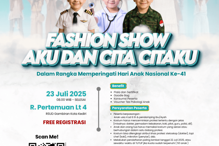 Dalam rangka memperingati Hari Anak Nasional ke-41, RSUD Gambiran Kota Kediri bersama Pemerintah Kota Kediri mempersembahkan Fashion Show...