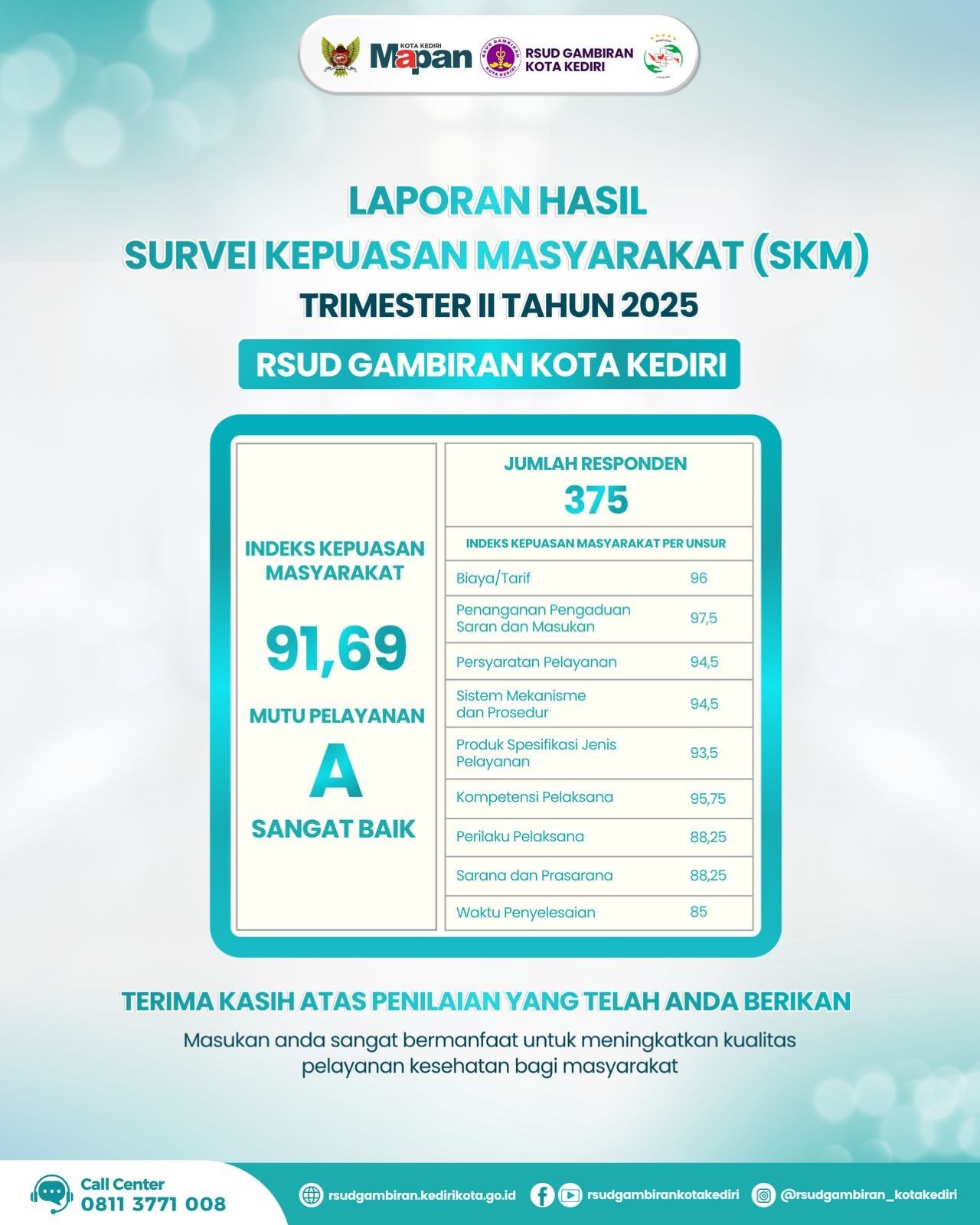 Terima kasih atas kepercayaan masyarakat kepada RSUD Gambiran Kota Kediri.