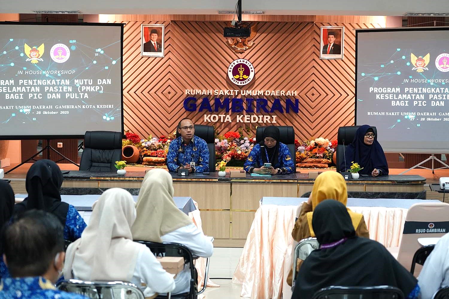 RSUD Gambiran Kota Kediri menggelar kegiatan In House Workshop (IHW) Program Peningkatan Mutu dan Keselamatan Pasien (PMKP) bagi para PIC dan PULTA selama 2 ( dua ) hari pada tanggal 27 & 28 Oktober 2025 di Gedung Pertemuan lt 4 RSUD Gambiran Kota Kediri.