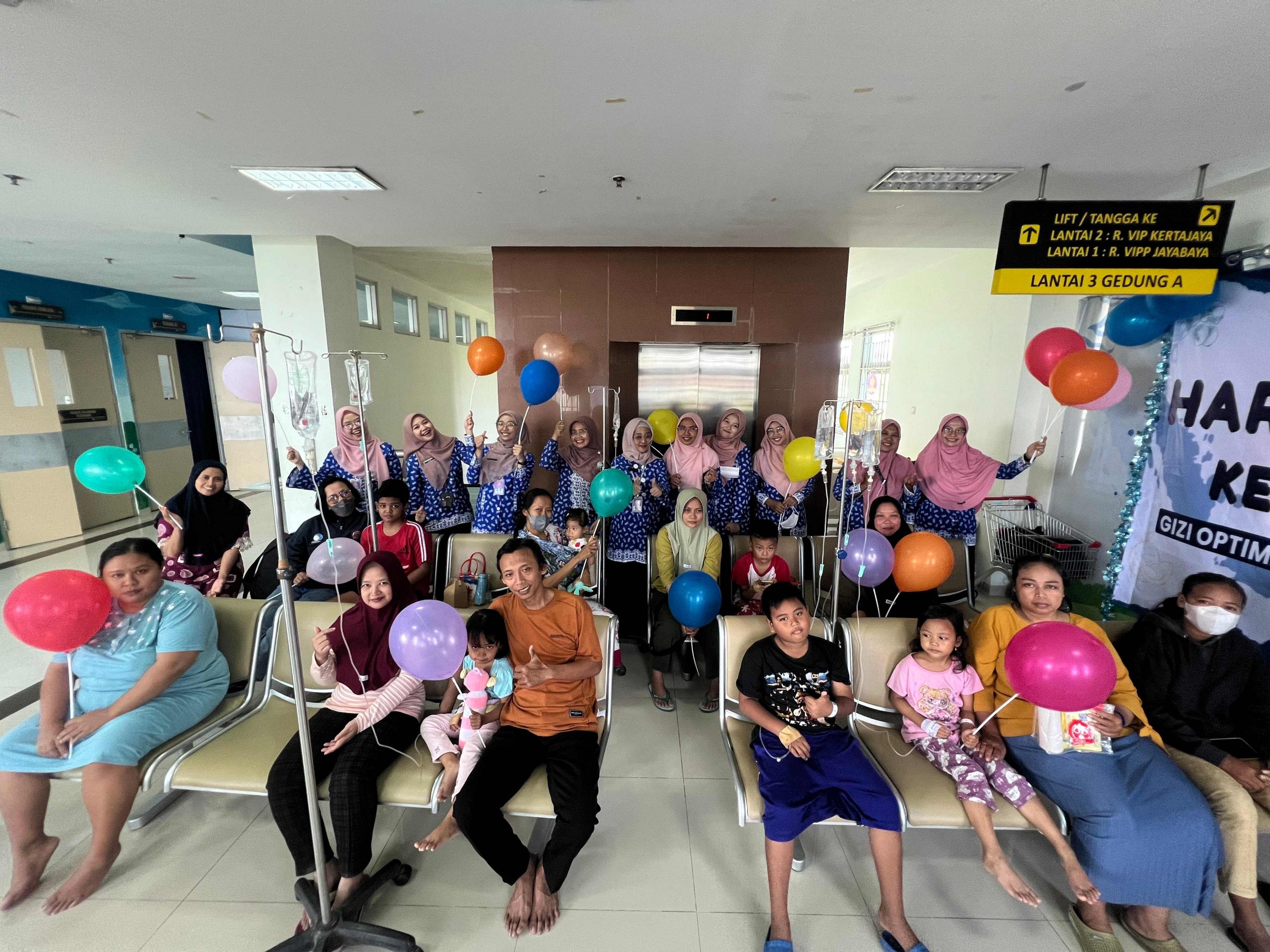 Kegiatan kemudian dilanjutkan dengan penyuluhan tentang makanan bergizi yang dilaksanakan di Ruang Anak Galuh. Edukasi ini ditujukan kepada pasien anak dan pendampingnya dengan metode yang interaktif dan menyenangkan. Untuk meningkatkan antusiasme, panitia juga mengadakan kuis serta pembagian doorprize bagi pasien yang berpartisipasi aktif.