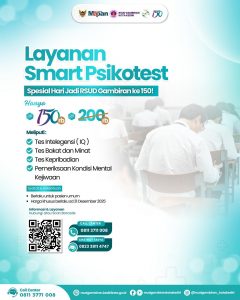 Untuk mendukung kebutuhan asesmen psikologis masyarakat, RSUD Gambiran menghadirkan Smart Psikotest dengan harga khusus Rp150rb dari Rp200rb.