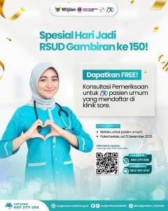 Dalam rangka memperingati Hari Jadi RSUD Gambiran Kota Kediri yang ke-150, rumah sakit menghadirkan sejumlah program layanan spesial bagi masyarakat. Program ini merupakan bentuk apresiasi RSUD Gambiran atas kepercayaan publik sekaligus upaya memperkuat pelayanan kesehatan yang mudah diakses, responsif, dan berorientasi pada kebutuhan masyarakat.