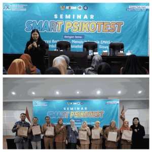 Sesi seminar inti disampaikan oleh Kristika Sdatyaruni,S.Psi., M.Psi., Psikolog, yang memaparkan konsep dan implementasi SMART Psikotest sebagai salah satu layanan unggulan RSUD Gambiran Kota Kediri dalam mendukung kesehatan mental dan pengembangan potensi generasi muda.